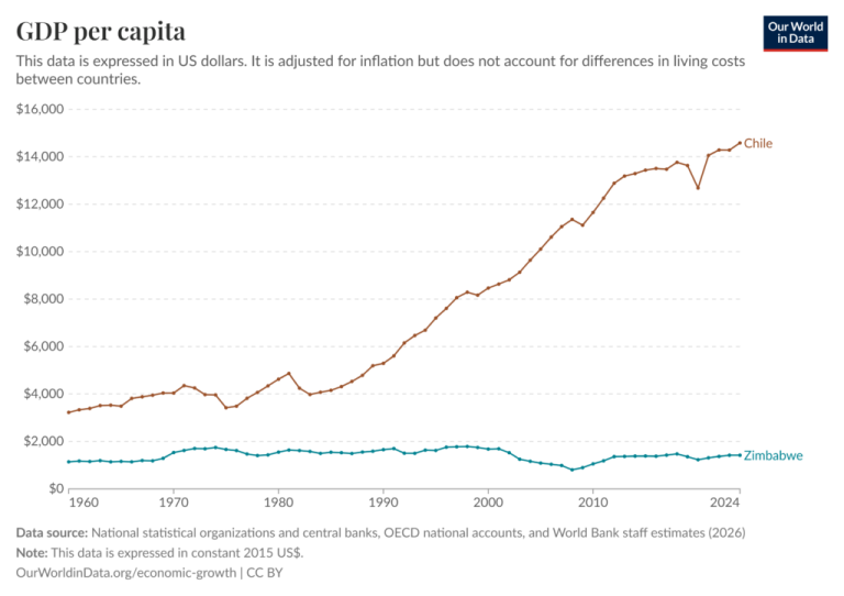 If history is any guide, increasing the slope would have an amazing impact on human flourishing worldwide. If national leaders worried about their EFW Index the way college football teams do their playoff rankings, we might see more stories like Chile, including in places like Zimbabwe.