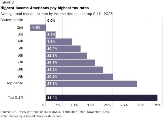 Income tax rates for the poor declined dramatically in the Coolidge period. But today, the lower half of US taxpayers contribute only about three percent of income tax receipts. By contrast, the top 25 percent of income earners contribute over 87 percent of total federal tax revenues. Those in the lowest 20 percent of income earners receive what economists call a negative income tax (Figure 2, courtesy of Cato.org). These households are net recipients of tax revenue, mostly via the earned income tax credit and the child tax credit.
