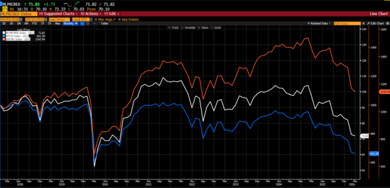 As discussed previously, a growing list of developments has unsettled investors. Now, on top of those at Blue Owl Capital, Apollo Global Management, and Morgan Stanley’s North Haven Private Income Fund, JPMorgan Chase has begun marking down private credit loans. Concerns have gone international. These are not systemic failures, but they do mark the transition of private credit from a benign, yield-enhancing allocation into a market experiencing its first meaningful credit cycle. The sector, which expanded rapidly after the Global Financial Crisis as banks retreated from riskier lending, now faces the test of higher rates, weaker borrower fundamentals, and more discerning capital.