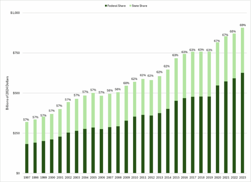 The National Taxpayers Union Foundation estimates that New York will have $3.8 billion less tax revenue to work with at both the state and local levels in 2025 because of out-migration. New York and New York City are losing that revenue year after year, shrinking the tax base and making future spending binges even harder to finance.